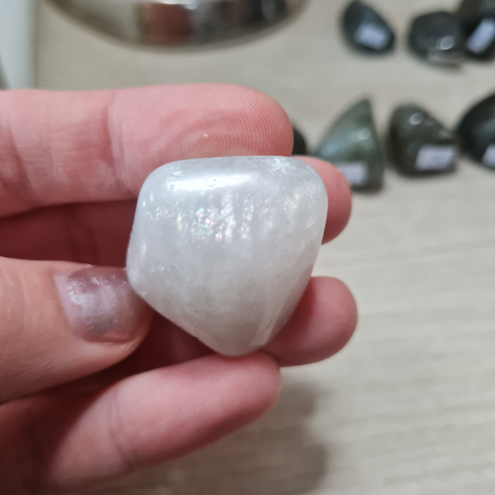 Mooie kwaliteit Regenboog Maansteen trommelstenen uit Zuid-Afrika.