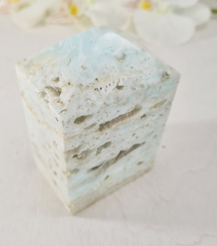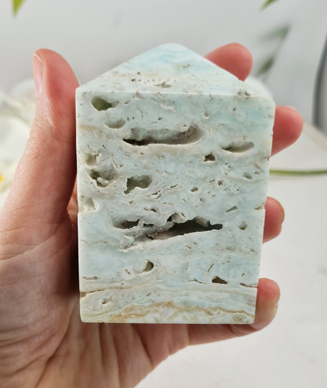 Deze edelsteen punt is niet zomaar een decoratief object, het is een bron van krachtige energie die je leven zal verrijken. Laat de Caribbean Calciet je begeleiden op je spirituele reis en je helpen om innerlijke rust en helderheid te vinden.