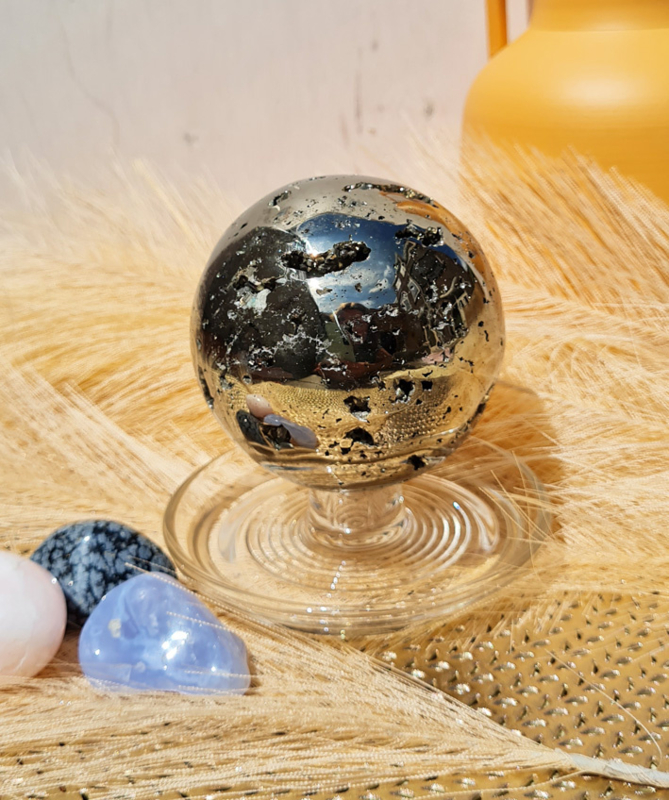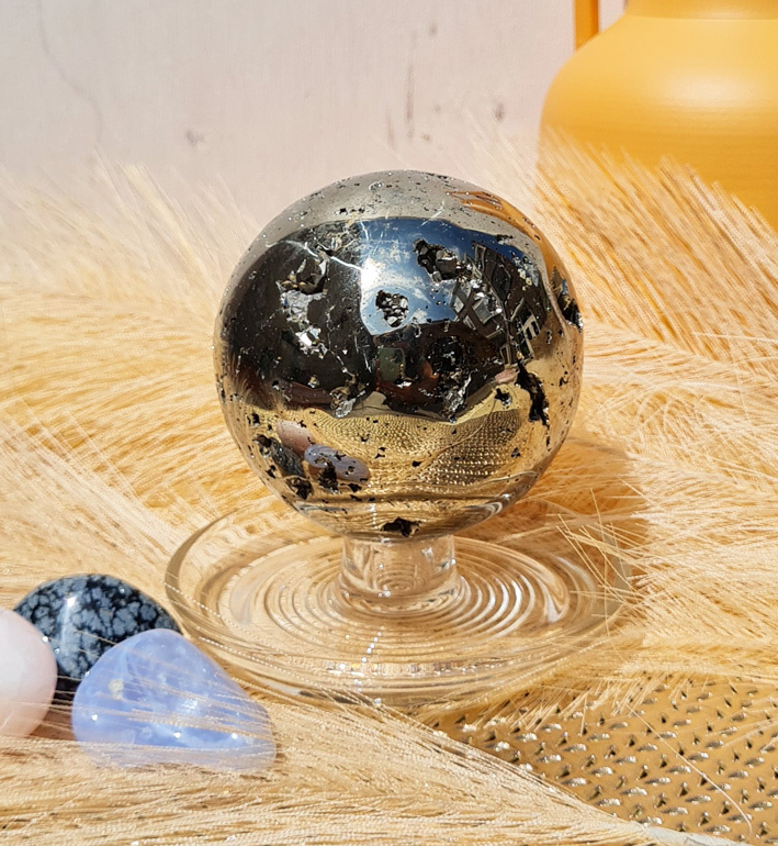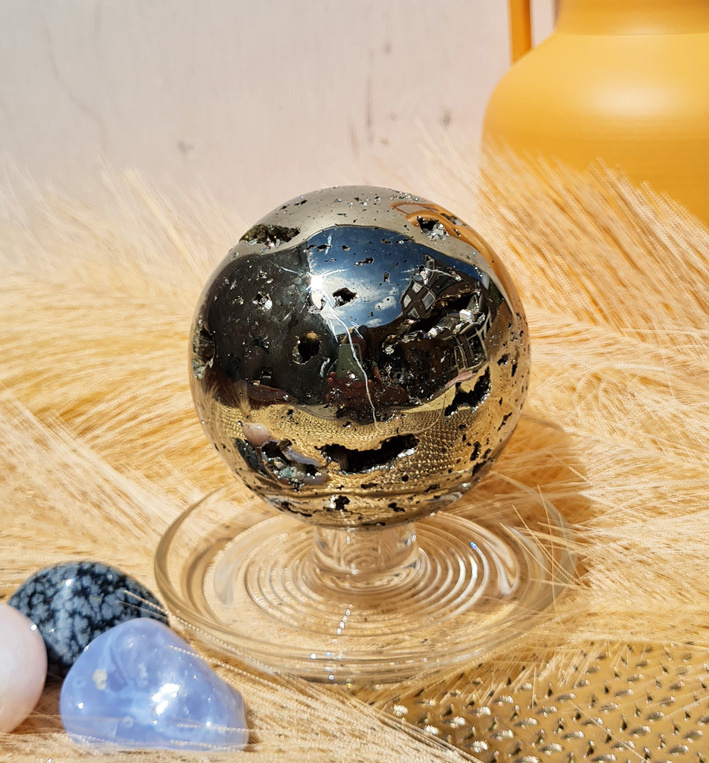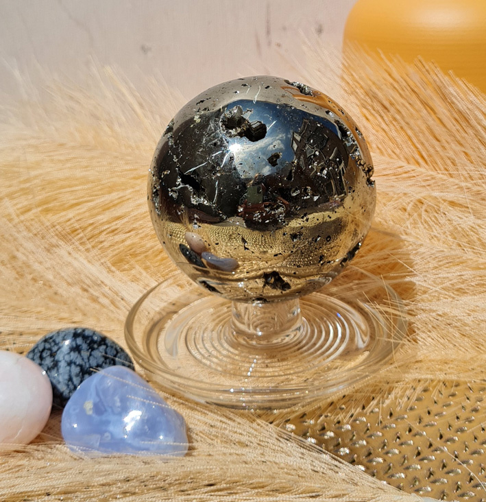 Pyriet is een sterk aardende steen, die je kan ondersteunen in het krijgen van inzicht in je drijfveren en waarden. Het helpt zelfvertrouwen te vergroten en zet je met beide voeten op de grond. Gevoelens van '' ik kan het niet'' verminderen. Je krijgt het gevoel je leven voluit te leven. Het zorgt ervoor dat je actie kan nemen, daar waar je het nodig hebt.