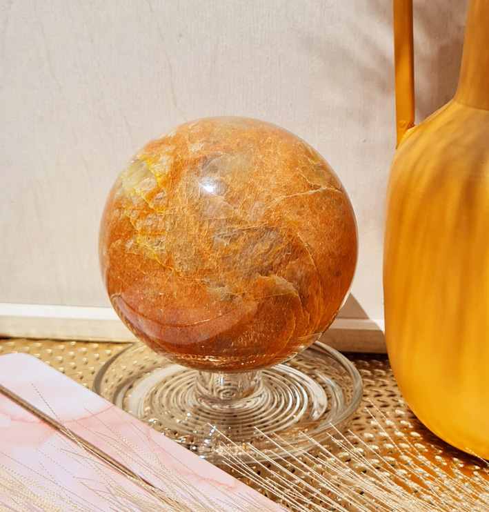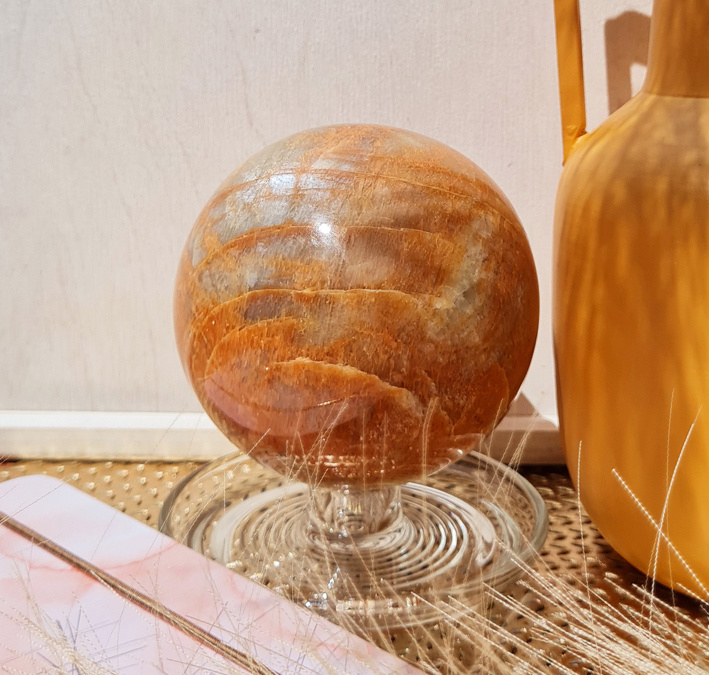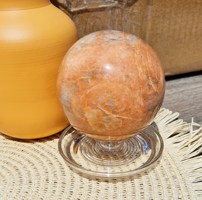 Artikelnummer: wmipv OverzichtPrachtige Roze Maansteen bol uit Madagaskar.