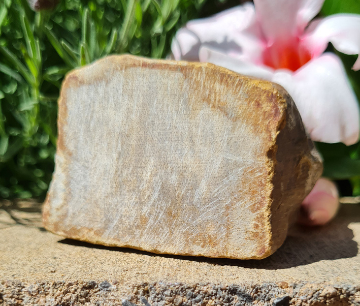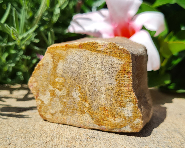 Deze stammetjes fossiel hout zijn aan de bovenzijde gepolijst en ± 20 miljoen jaar oud.