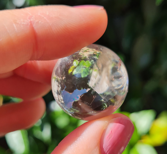 Deze bol zit vol met mooie regenbogen. Laat je verrassen door het mooie kleurenspel. Vooral als je hem in het (zon)licht houdt komen de mooiste kleuren naar voren.
