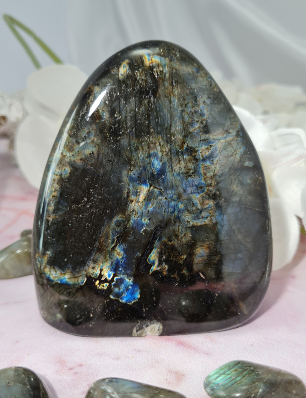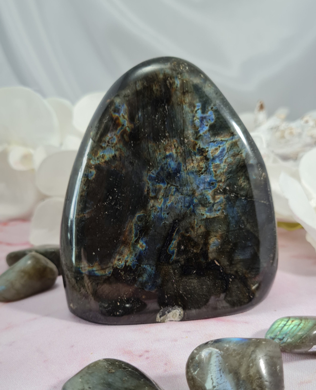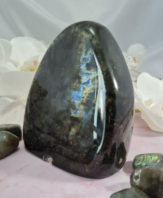 Let op deze labradoriet heeft enkele beschadigingen. Hierdoor is hij afgeprijsd.