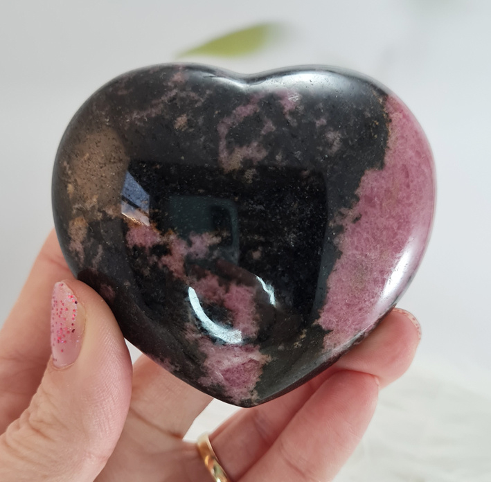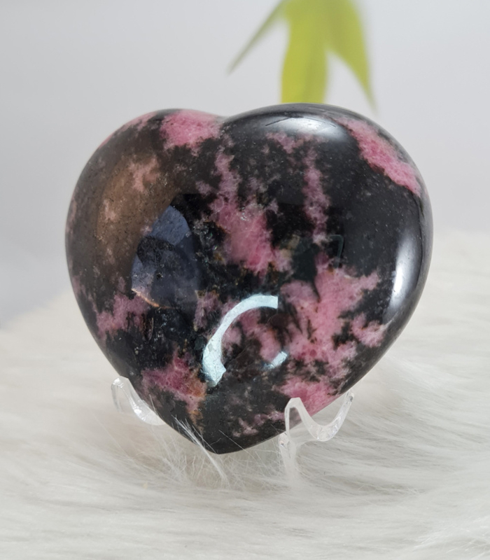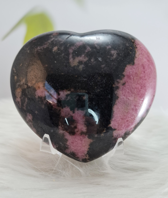 Prachtig geslepen Rhodoniet hart uit Madagaskar.