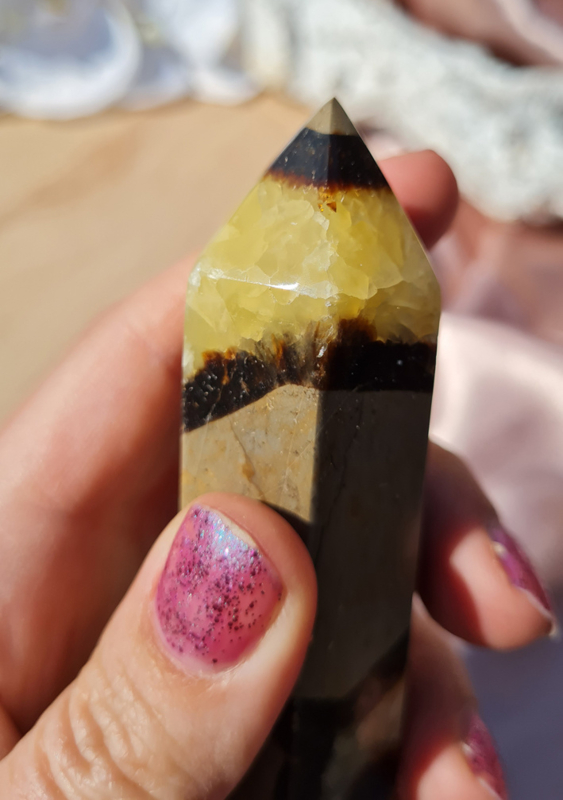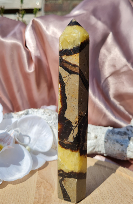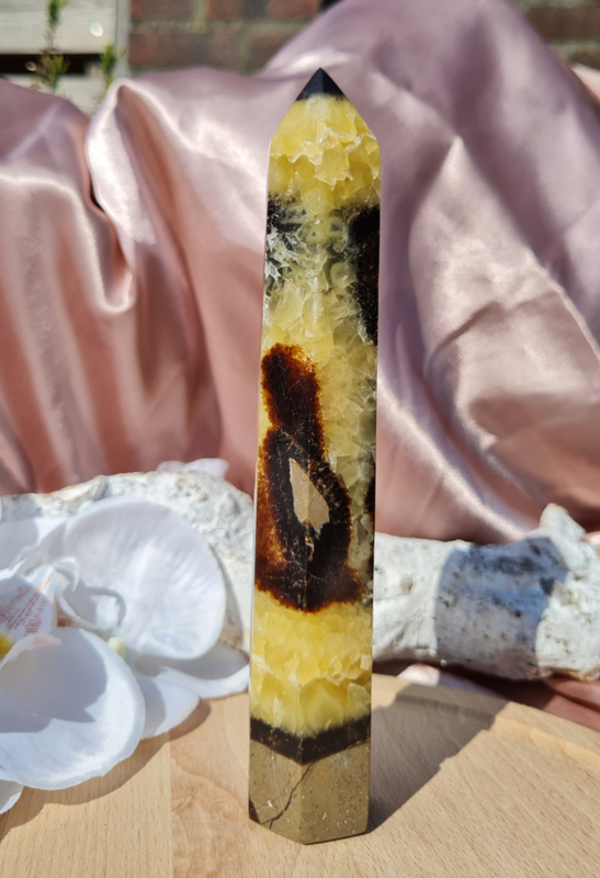 Artikelnummer: 15278-3 OverzichtEen mooie Septarie punt. Hoe gaaf is deze punt. Het is net alsof het een potloodpunt heeft door de bruine punt.