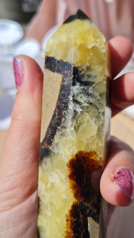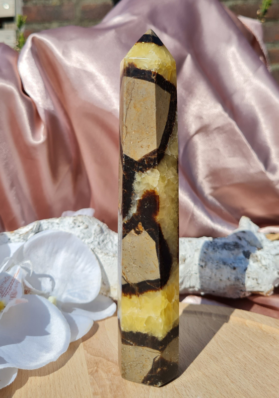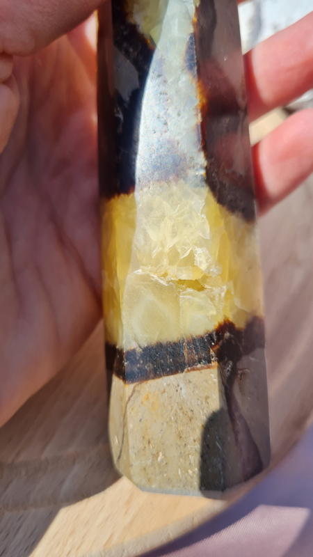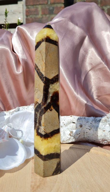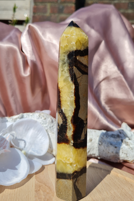 Onze Septarie komt voornamelijk uit Madagaskar en kenmerkt zich door de aanwezigheid van (gele) calciet.