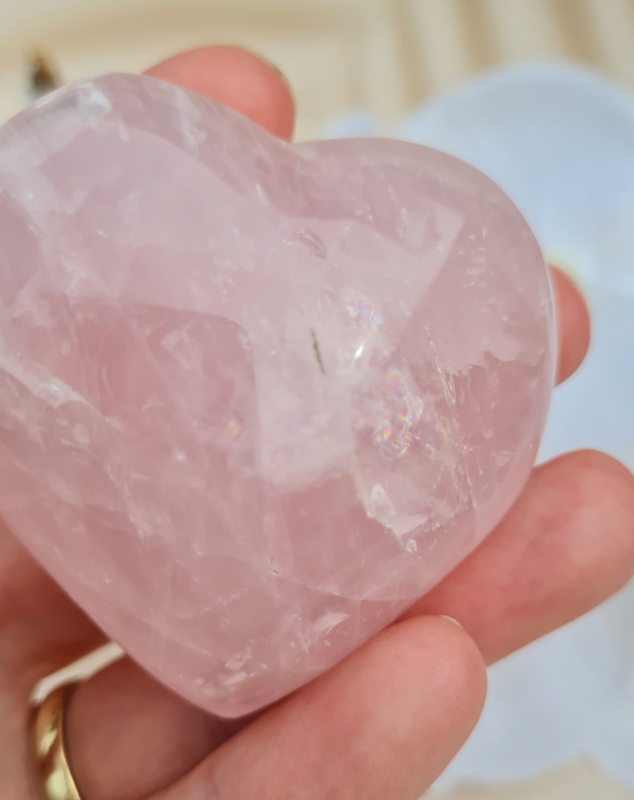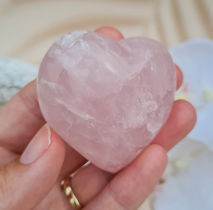 De edelsteen roze kwarts is verbonden met jouw hart en omhelst je met zachtheid, vriendschap, gevoel en liefde. Roze kwarts helpt je over je verdriet heen en laat je vrolijk zijn. Hij werkt sterk in op het hartchakra en opent het hart om liefde te ontvangen en om liefde te geven. De steen trekt harmonieuze liefdes- en vriendschappelijke relaties aan en bevordert ook eigenliefde en zelfacceptatie. Roze kwarts heeft een milde, zachte werking en werkt kalmerend bij verdriet en trauma's en bevordert empathie, openheid en behulpzaamheid. De steen maakt ontvankelijk voor alle soorten schoonheid en stimuleert creativiteit en fantasie. Bevordert volwassenheid, versterkt verstand, voorkomt duizeligheid, bij ouderdomskwalen.
