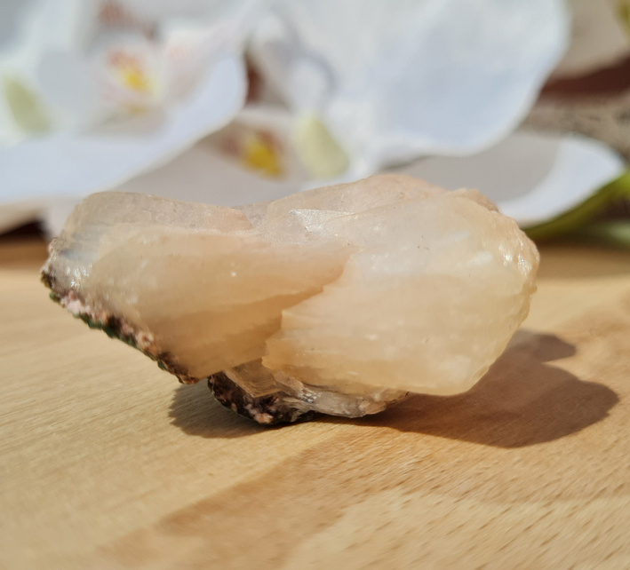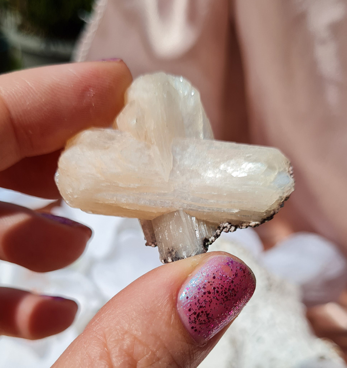 Een mooie Stilbiet zacht wit roze van kleur. Deze stilbiet heeft de herkenbare strik-vorm. De Stilbiet heeft een mooie parelmoer glans over zich.