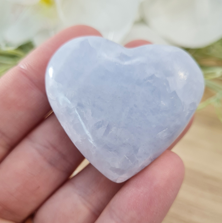 Blauwe Calciet Edelsteen Hart - No.08 - Madagaskar - 4 cm