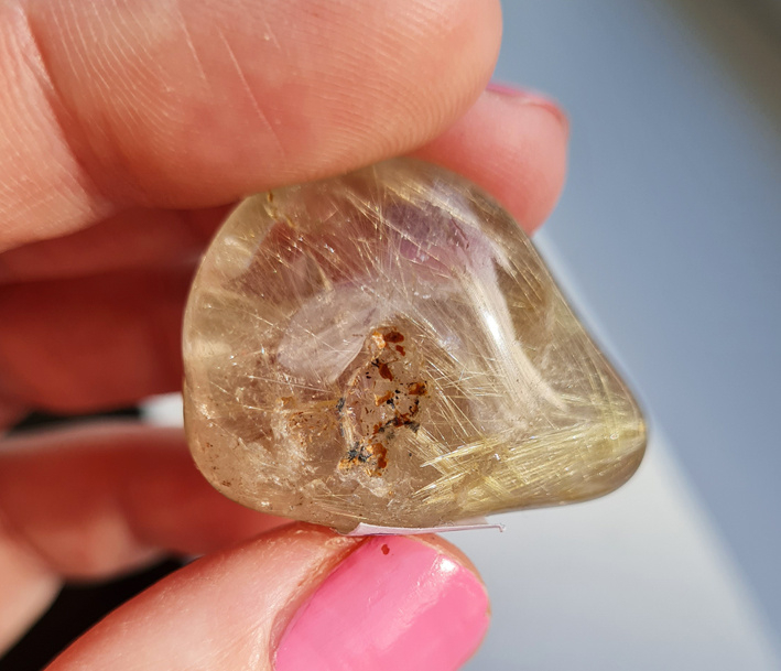 In de heldere tot rookkleurige kwarts zitten insluitingen bestaande uit rutielnaaldjes.