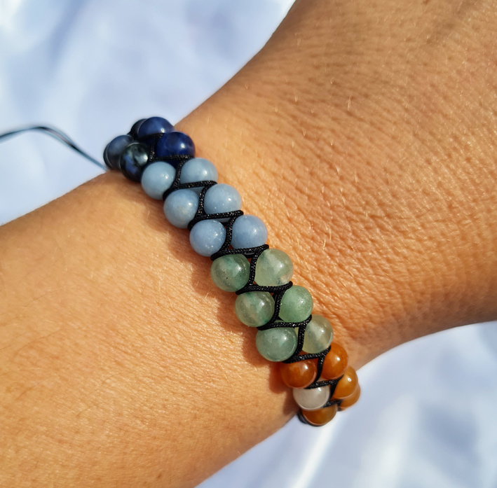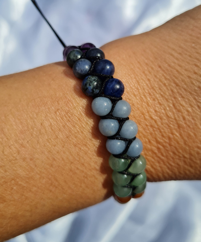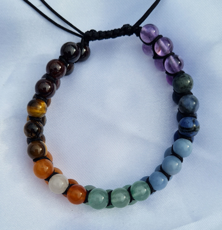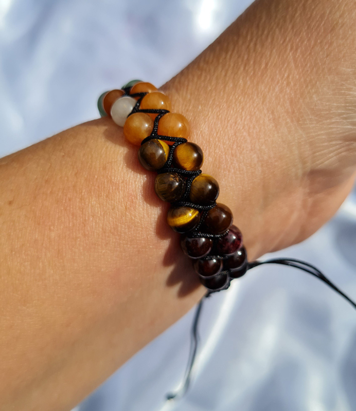 Artikelnummer: P 12632 OverzichtArmband met twee rijen chakra mineralen, gemaakt met mooie edelstenen: