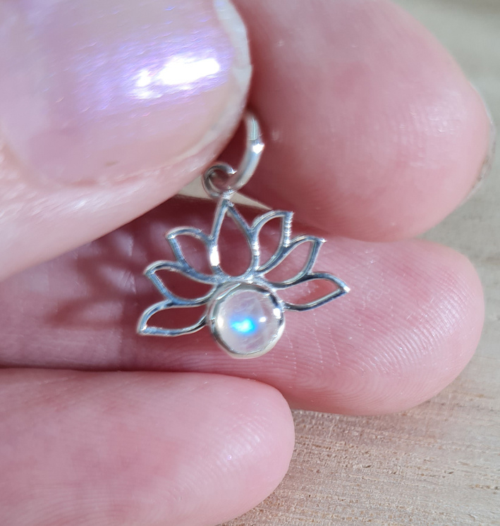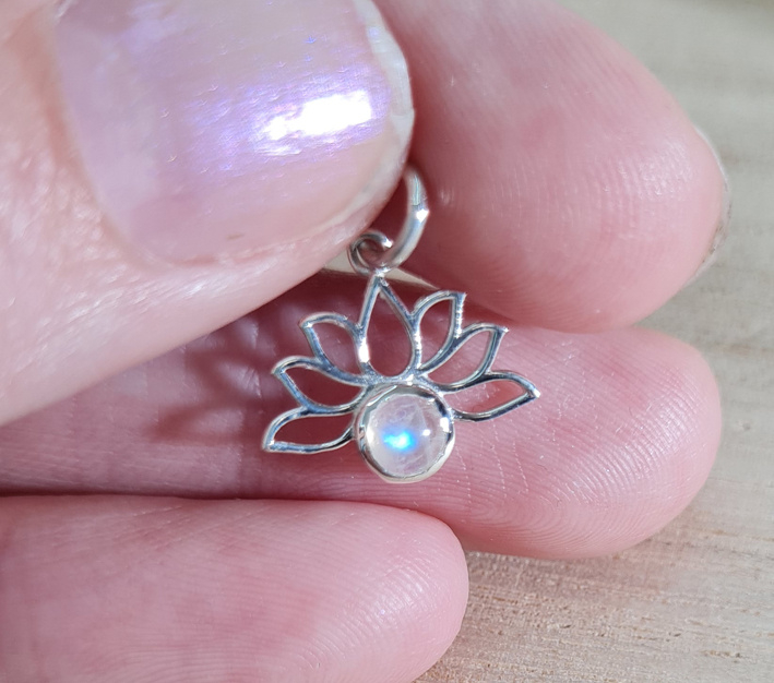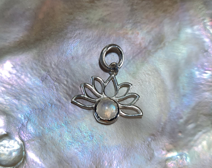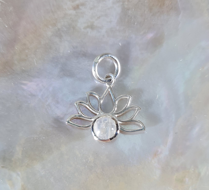Artikelnummer: 30355m - p OverzichtEen prachtige zilveren hanger die fantastisch zal staan aan jouw hals. De hanger is met een lotusbloem en hieronderin een ronde Maansteen.