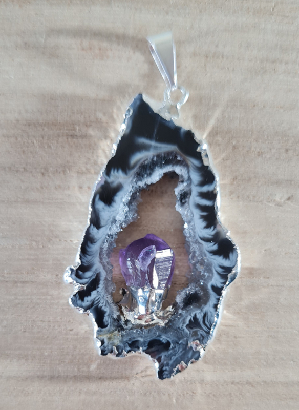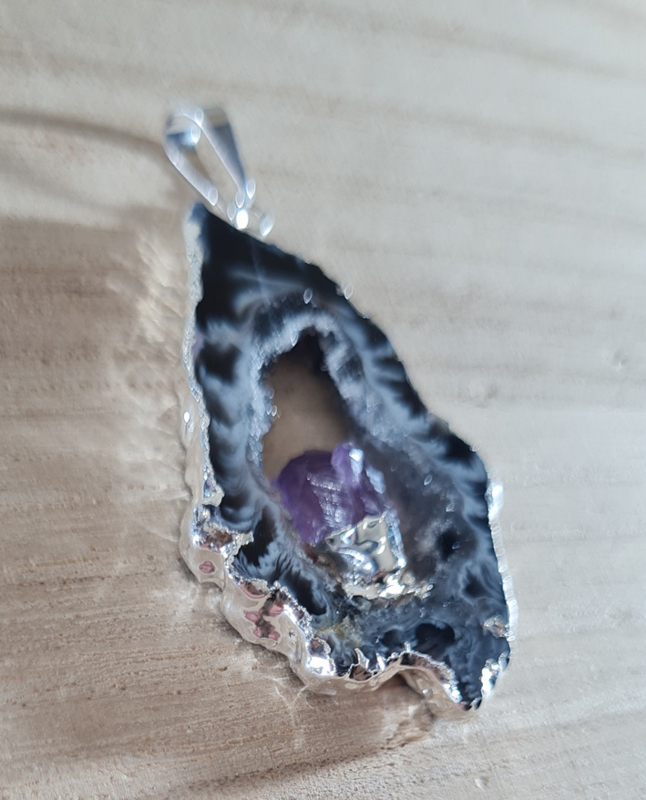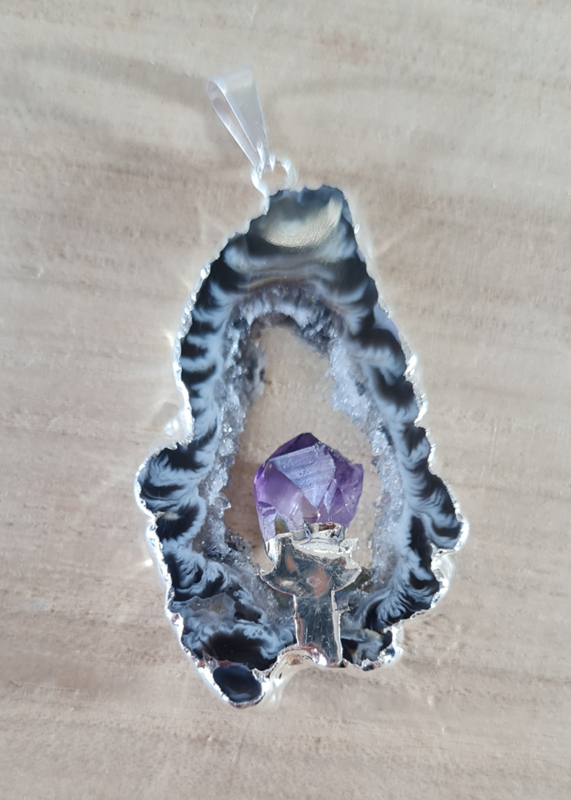 Edelsteen Hanger Agaat Geode Staande Amethist Verzilverd