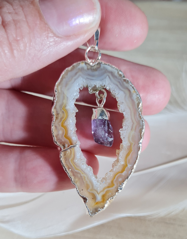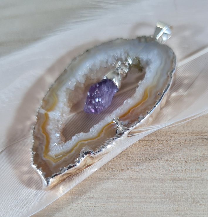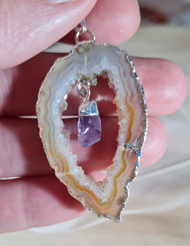 Edelsteen Hanger Agaat Geode Hangende Amethist Verzilverd