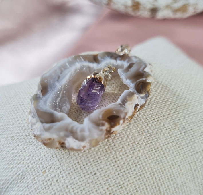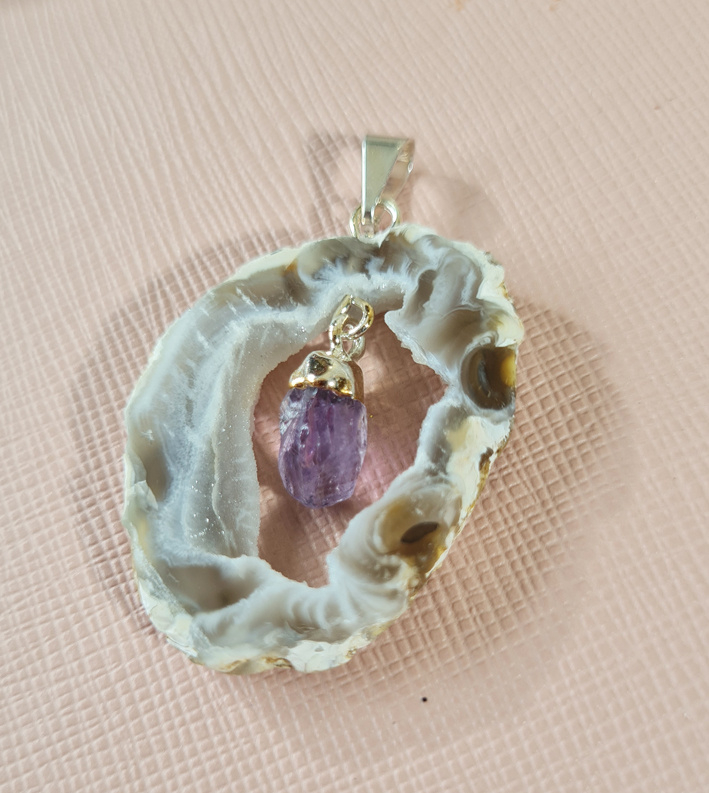 Edelsteen Hanger Agaat Geode Hangende Amethist