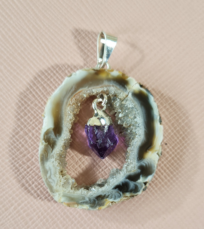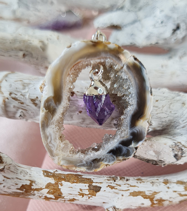 Edelsteen Hanger Agaat Geode Hangende Amethist