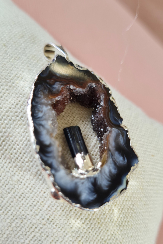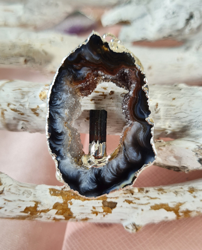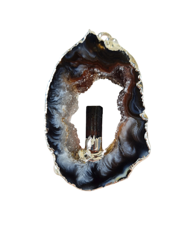 Edelsteen Hanger Agaat Geode Staande Toermalijn Verzilverd