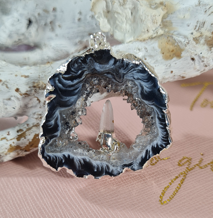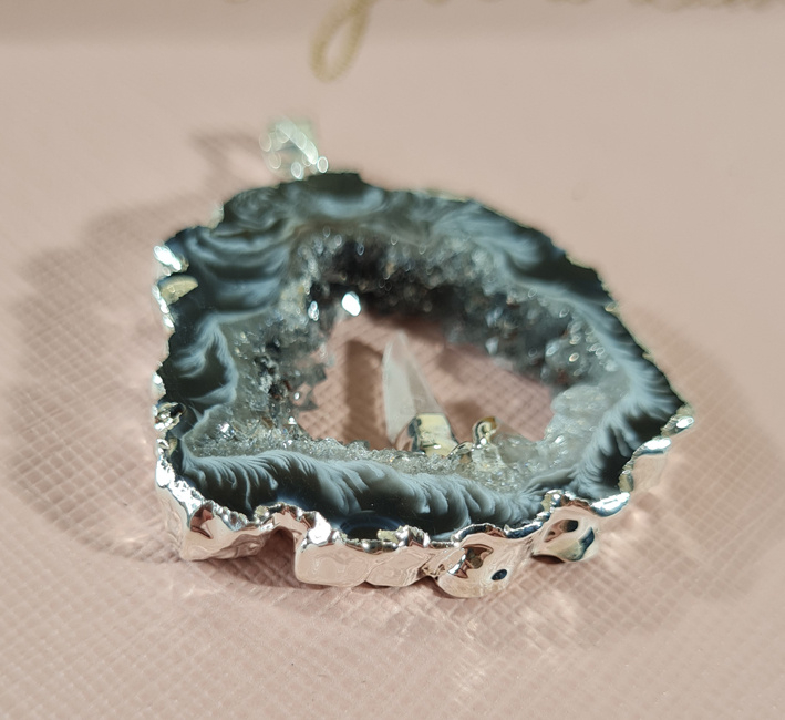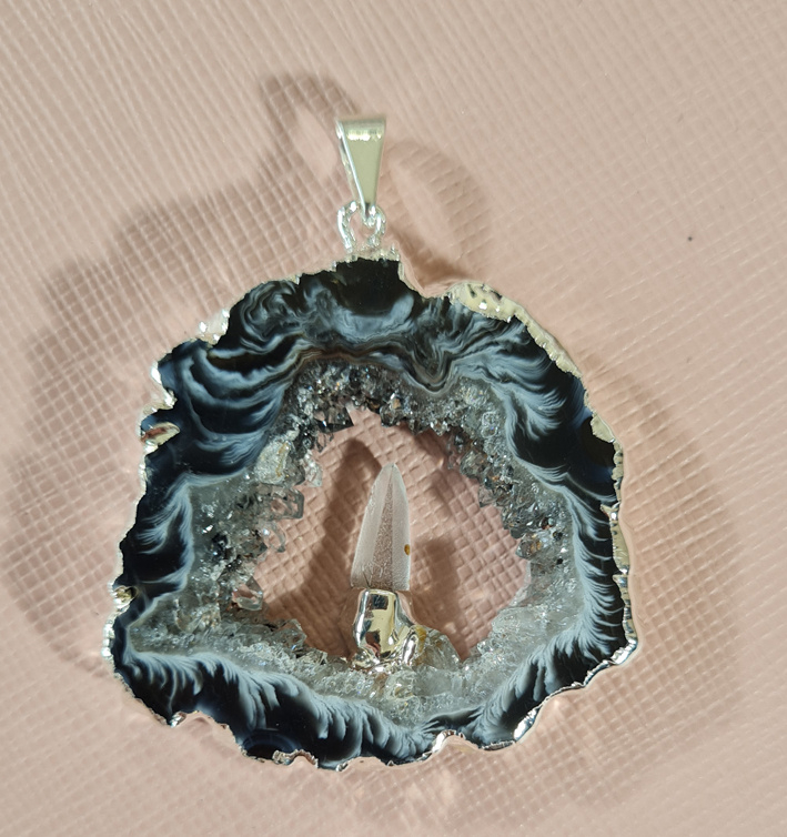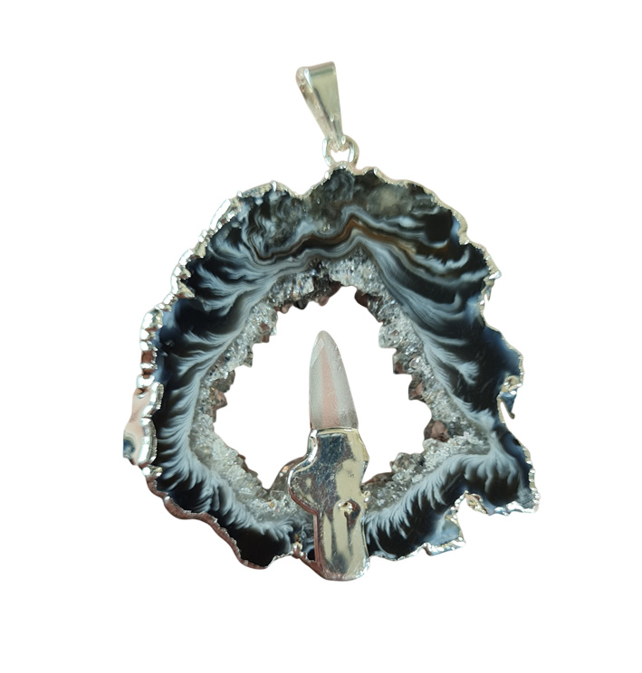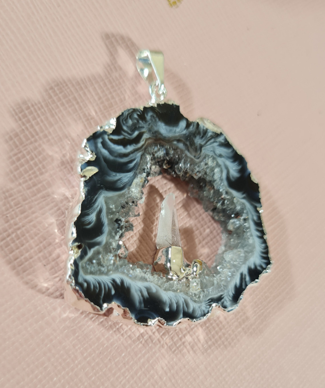 Edelsteen Hanger Agaat Geode Staande Bergkristal Verzilverd