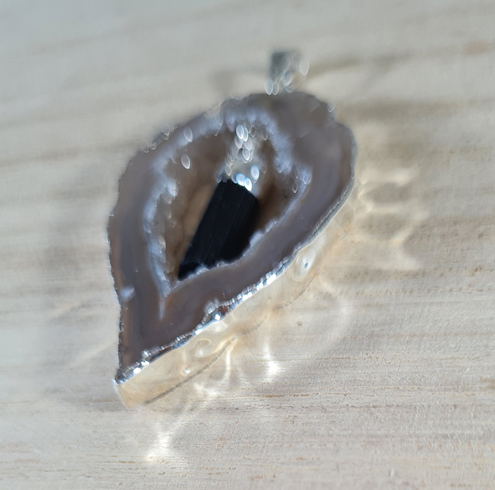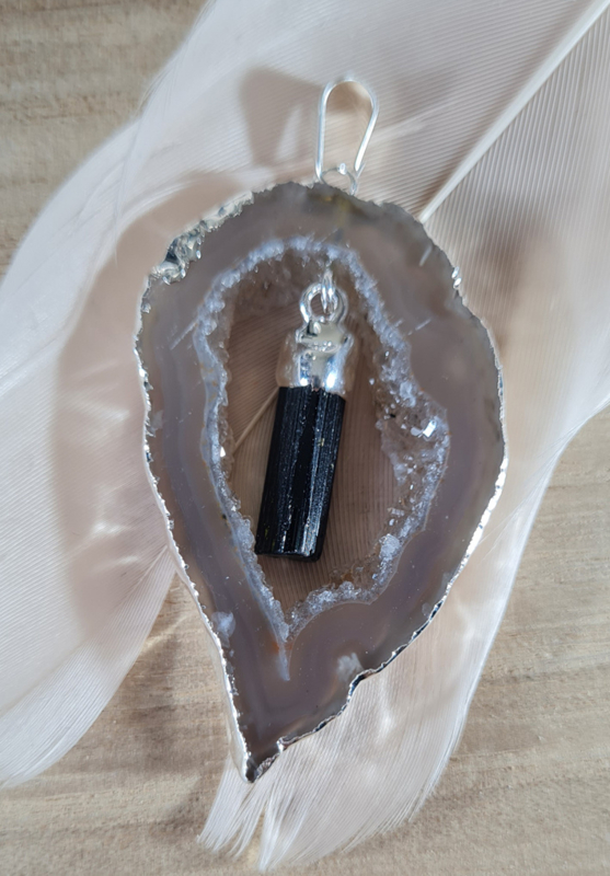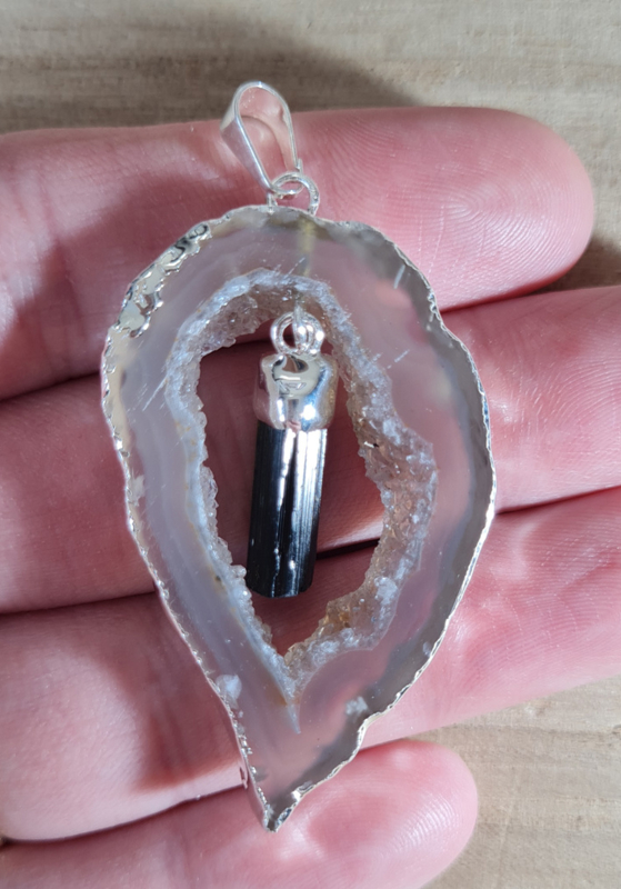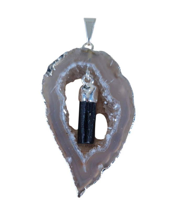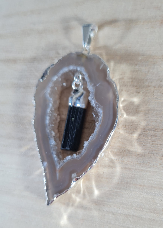 Edelsteen Hanger Agaat Geode Hangende Toermalijn Verzilverd