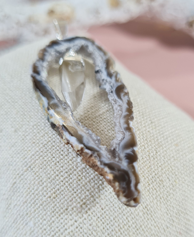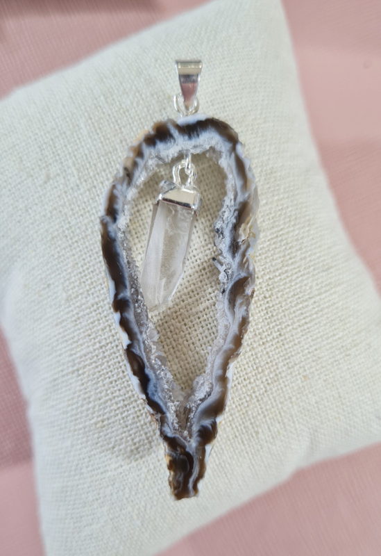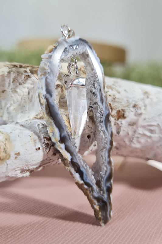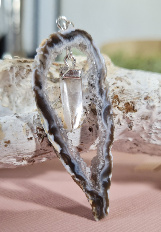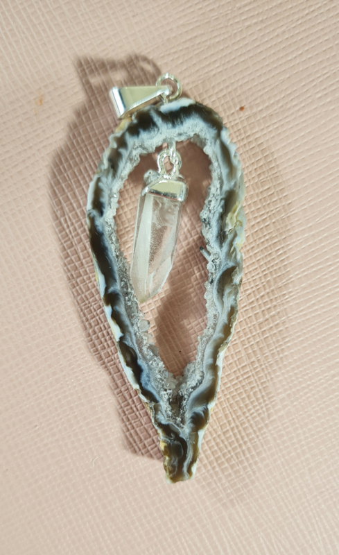 Edelsteen Hanger Agaat Geode Hangende Bergkristal