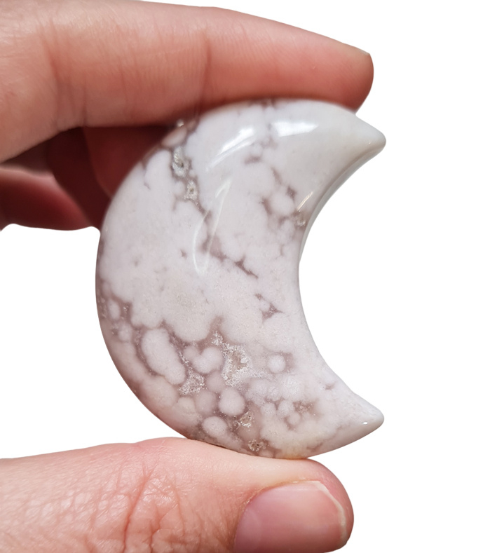 Artikelnummer: wmp OverzichtEen mooi glad gepolijste maan van bloem agaat. Dit wordt ook wel flower agaat genoemd.