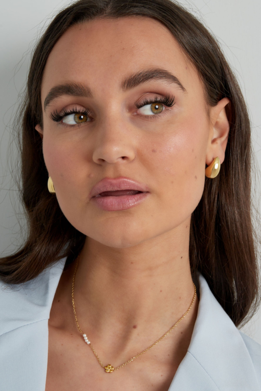 Artikelnummer: p OverzichtEen prachtige ketting met hieraan drie mooie imitatie parels en hiernaast een goudkleurige bloem. Een perfecte ketting bij iedere outfit.