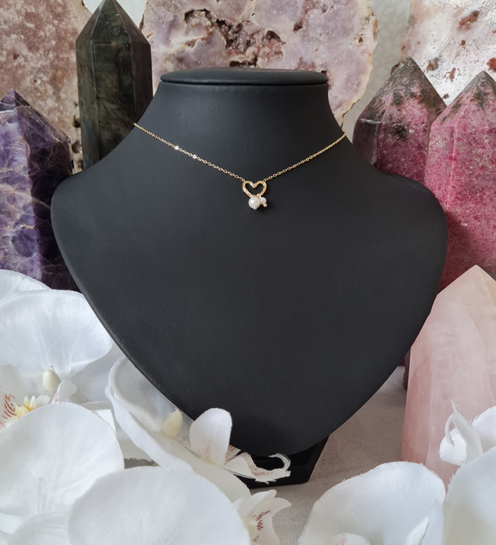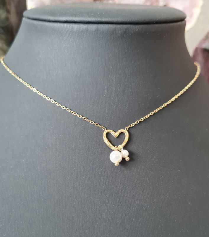 Artikelnummer: p OverzichtEen mooie ketting met een prachtig hart en hieraan twee imitatie parels.
