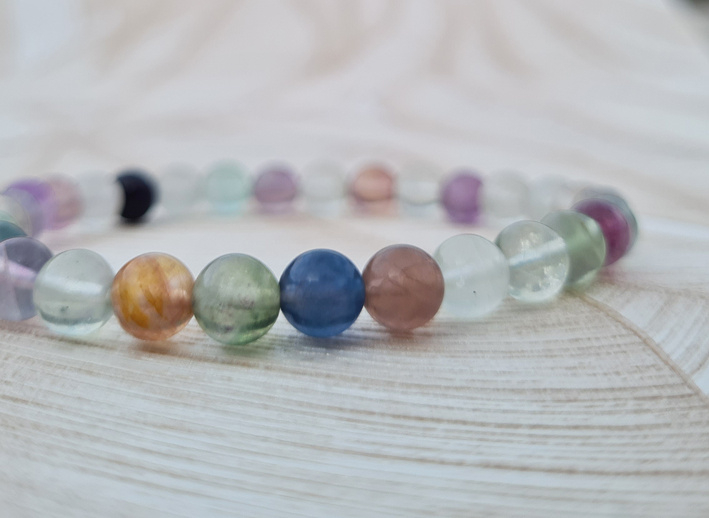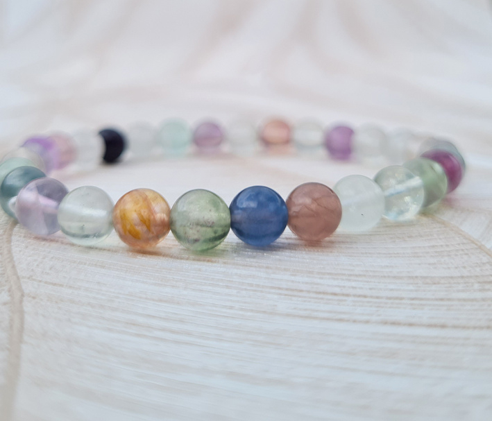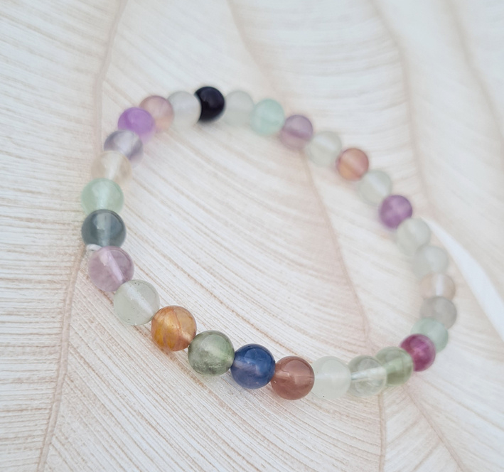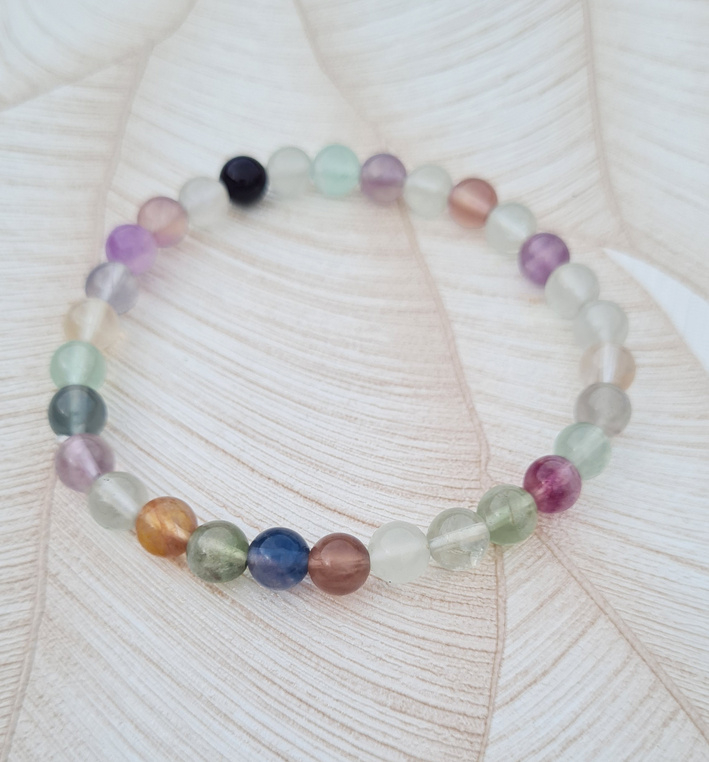 OverzichtEen mooie armband van Fluoriet met een doorsnede van 6 mm per kraal.