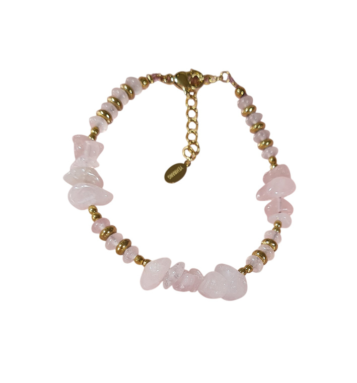 Edelsteen Armband Rozenkwarts - Stainless Steel Goudkleur