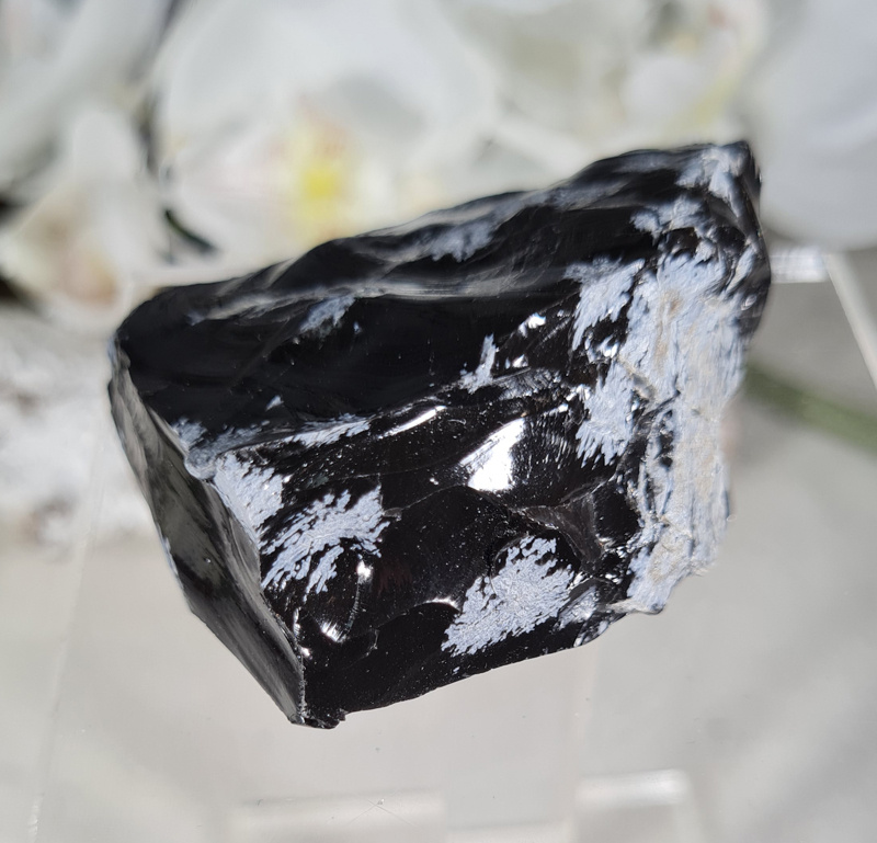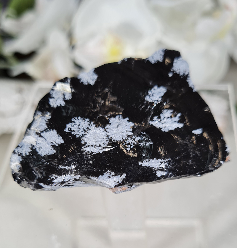 Deze steen heeft het mooie sneeuwvlok effect met de licht grijze stukken in de Obsidiaan.
