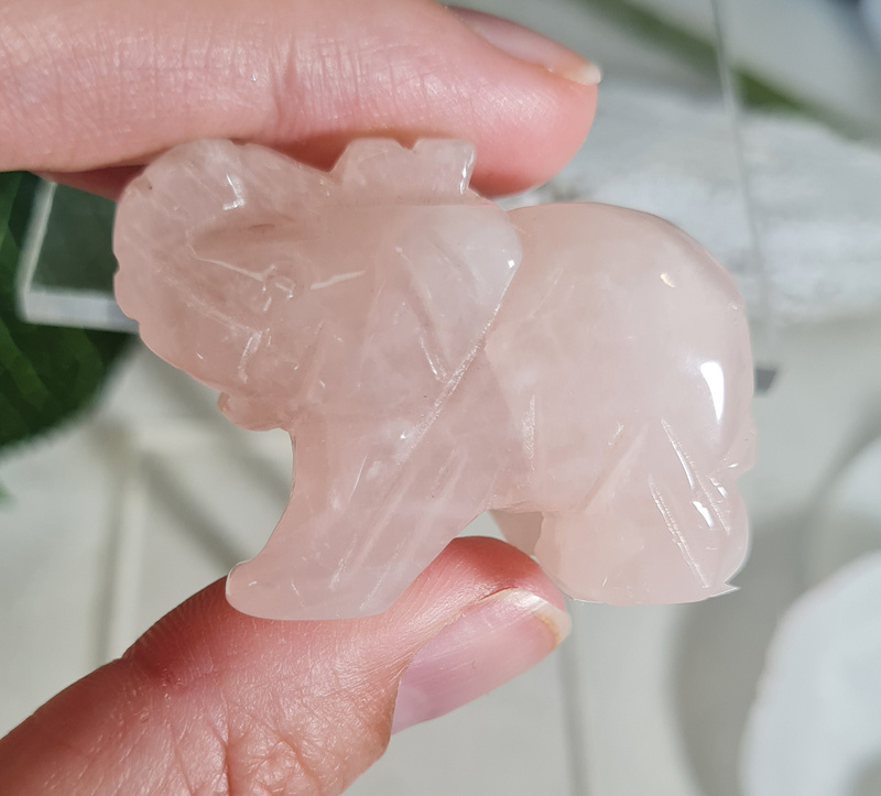 Olifant Rozenkwarts Edelsteen Carving 4 cm