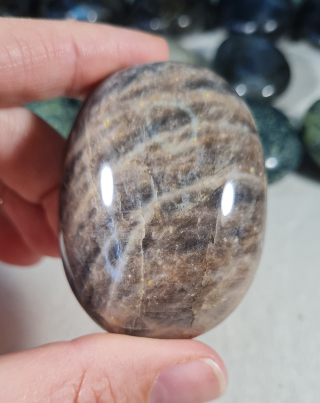 Artikelnummer: wipmv OverzichtMooie kwaliteit Zwarte Maansteen, hand geslepen uit Madagaskar.