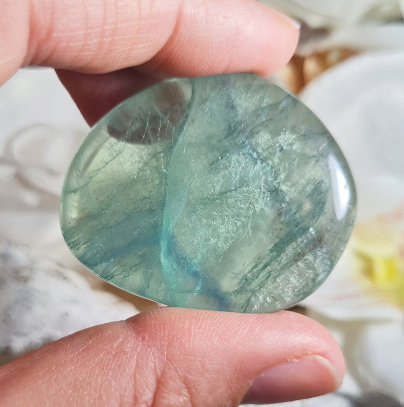 Artikelnummer: wmp OverzichtEen mooie platte steen van Fluoriet. De steen wordt ook wel een oplegsteen genoemd.