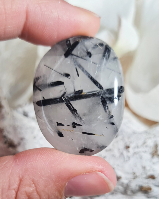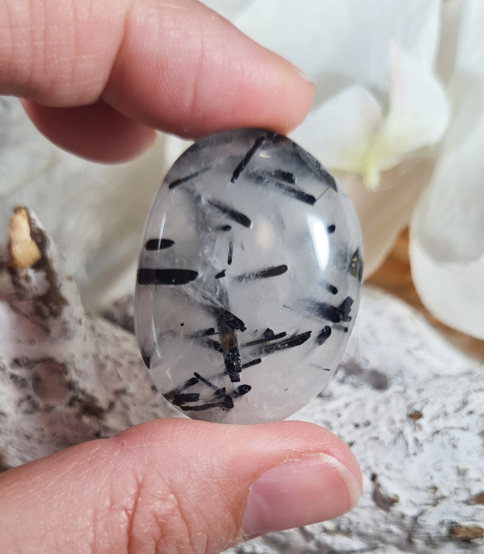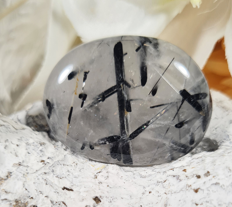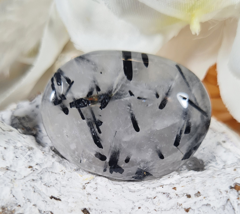 Toermalijn in Kwarts Platte Steen 4 cm no.6 Edelsteen