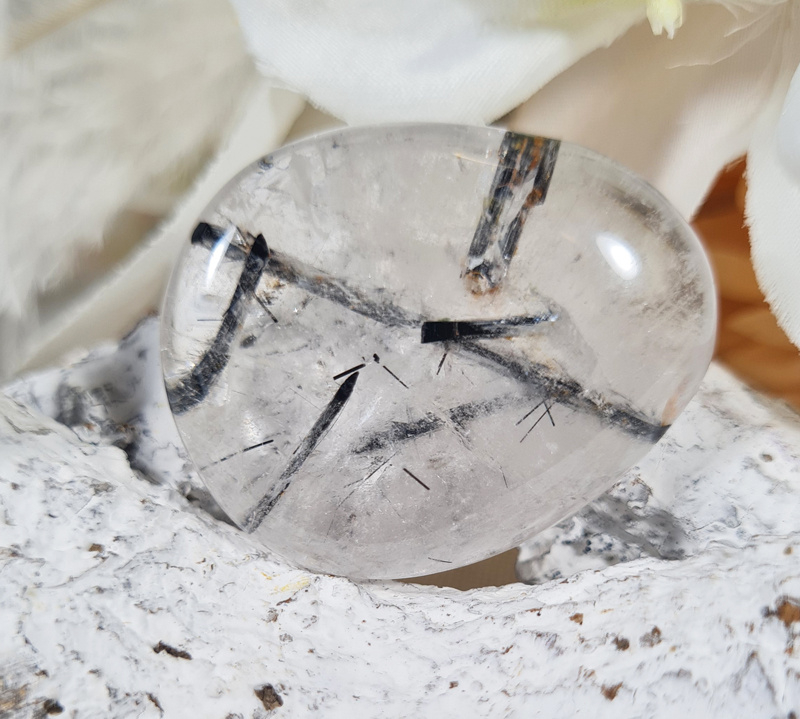 Toermalijn in Kwarts Platte Steen 3,5 cm no.8 Edelsteen
