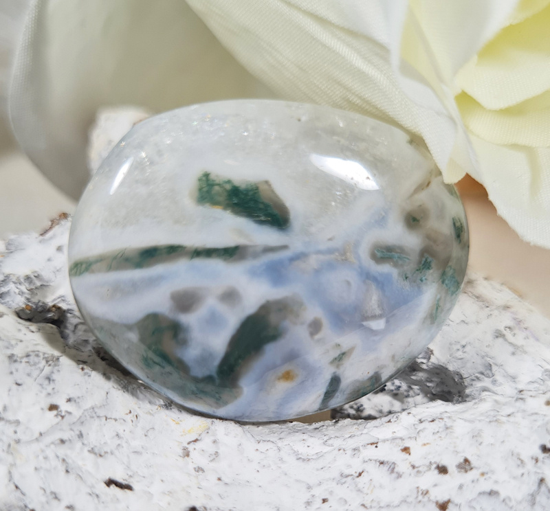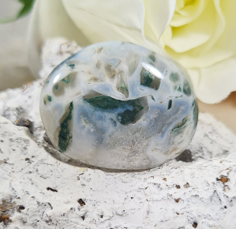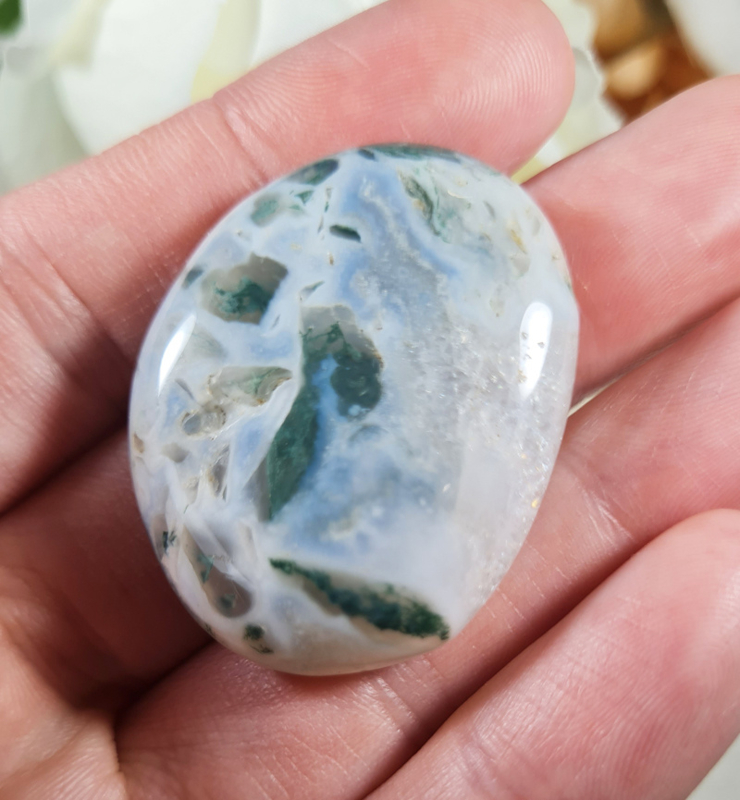 Artikelnummer: wmp OverzichtEen mooie Mosagaat steen met een mooi patroon. Deze fijne steen kun je gemakkelijk met je meenemen. Hij wordt dan ook wel een platte steen of een oplegsteen genoemd. De steen kun je ook op je lichaam leggen. Je kunt dit bijvoorbeeld doen bij een ontspanningsmoment, een meditatie, reiki of edelstenen healing. Door de vorm van de steen blijft hij makkelijker liggen als bijvoorbeeld een trommelsteen.