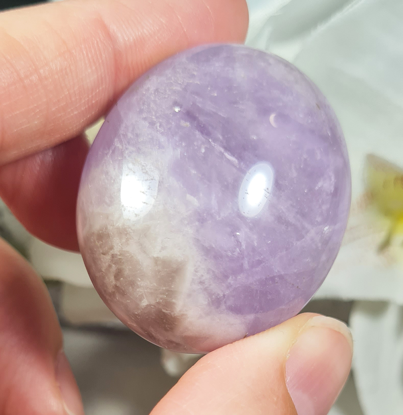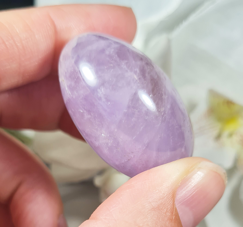 Deze mooie Amethist is naast de andere palmstenen net iets kleiner van formaat.