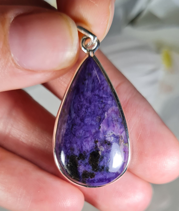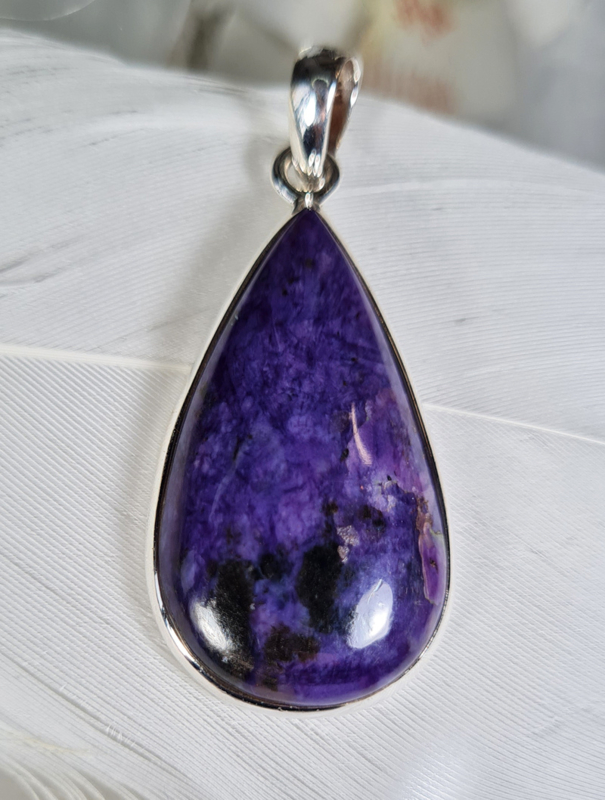 Wat deze hanger extra bijzonder maakt, is het gebruik van hoogwaardig 925 Sterling zilver. Geen vergulde afwerking, maar volledig massief zilver – voor een duurzame, luxe uitstraling. De hanger is met de hand vervaardigd in India, en bevat een Charoiet steen van uitzonderlijke kwaliteit.