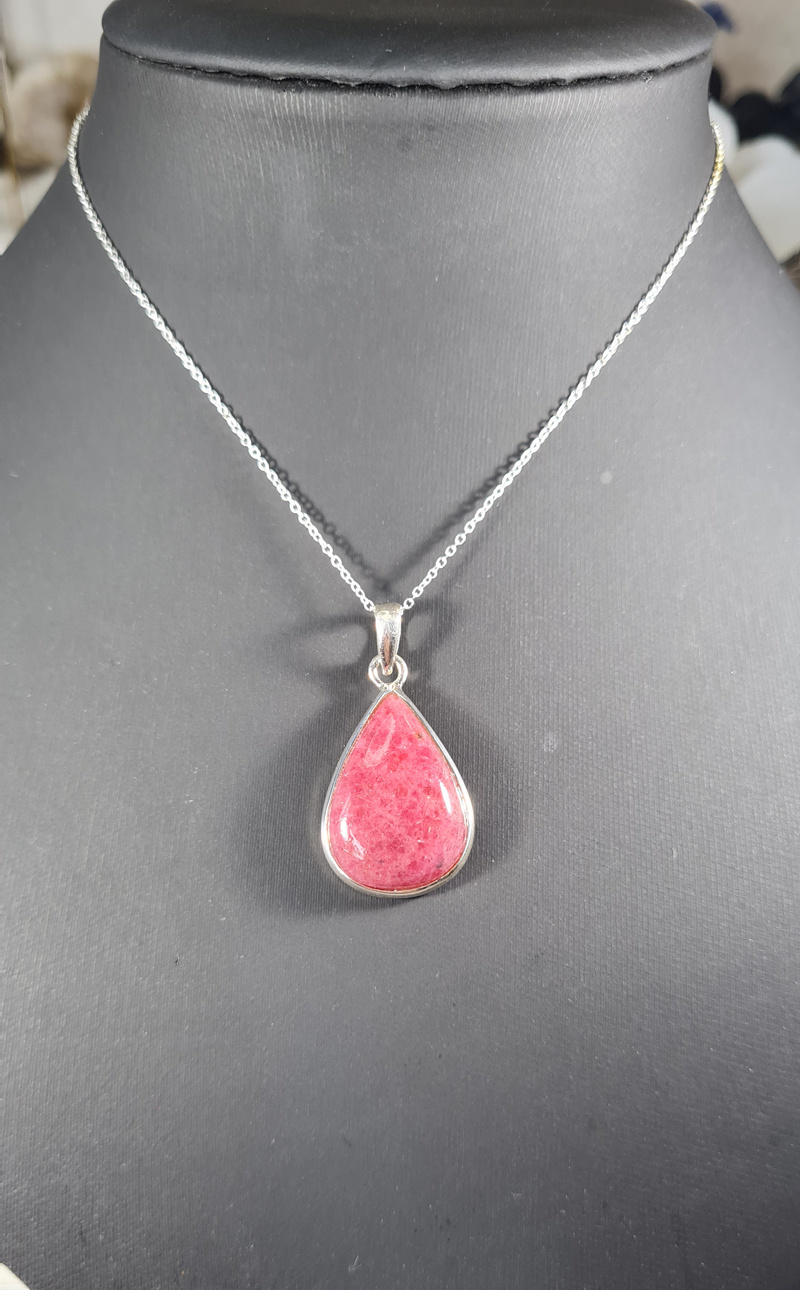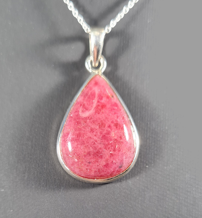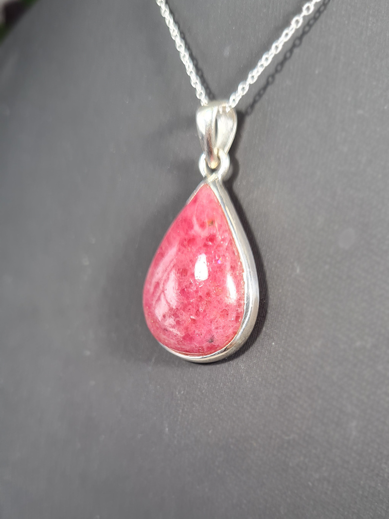 Artikelnummer: wmp OverzichtEen prachtig zilveren hanger van Rhodoniet met een mooie geslepen steen. De edelsteen hanger heeft een mooie druppel vorm.