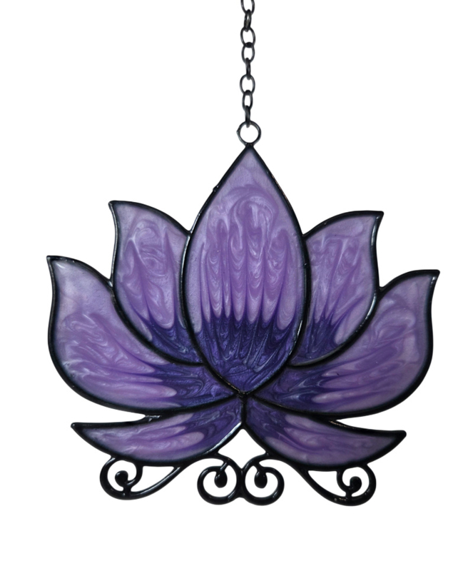 Raamhanger Lotus Paars 12 cmDeze raamhanger in de vorm van een lotusbloem is echt zo’n item dat meteen sfeer brengt zodra het zonlicht erop valt. Gemaakt van prachtig paars glas en subtiel omlijst met zwart metaal krijgt hij een stijlvolle en moderne…